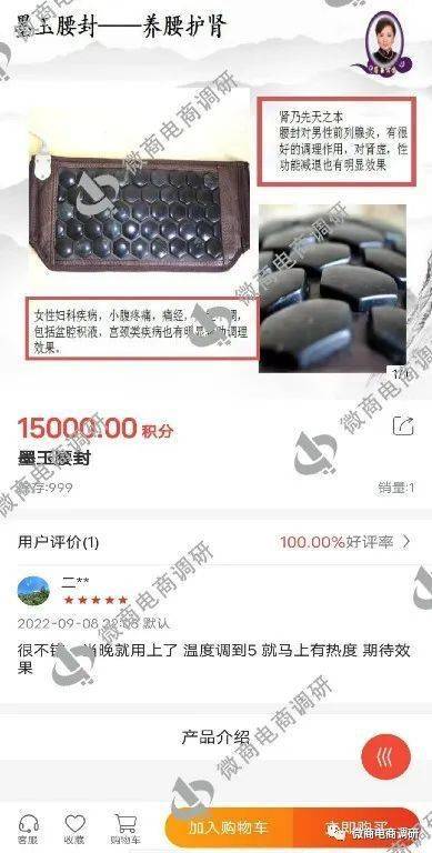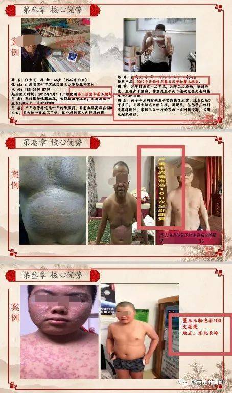 墨玉公主的宣传资料中,还附上了案例,66岁的高奶奶患有家族遗传性高血压,长期服用降压药,高压在180~200以上,使用墨玉坐垫和墨玉腰封半年后停掉了降压药,血压也稳定在130左右;75岁的徐爷爷患了中风,左边身子偏瘫,生活不能自理,使用墨玉枕头和墨玉床垫三个月后,左手功能恢复正常,三年后日常生活完全可以自理,还可以拿三五十斤的重物;有个孩子用墨玉玉粉泡浴100次,治好了身上和脸上的皮肤病;还有人泡浴100次治好了严重的牛皮癣。盛世玉宠的商城中,还直接宣传墨玉腰封对男性前列腺炎有很好的调理作用,对肾虚、性功能减退也有明显效果,对女性妇科疾病如小腹疼痛、痛经、月经不调、盆腔积液、宫颈类疾病都有明显效果。
