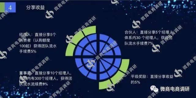 推荐好友可以获得其认购金额5%的推荐奖励,直接推荐5个有效用户(最少认购100)可以升级为经理,经理可以获得自己团队流水手续费5%的团队奖励,直接推荐的好友达到经理人同级可获得其收益5%的平级奖励;直接推荐5个经理人且团队内拥有30个经理人可升级为合伙人,合伙人可以获得团队流水手续费7%的团队奖励,还可以获得团队中经理人2%的极差奖励,若直接推荐的好友有人达到合伙人同级,可以获得其收益5%的平级奖励;直接推荐10个经理人且团队内拥有300个经理人可升级为董事局,董事局可以获得团队流水手续费9%的团队奖励,还可以获得团队中经理人和合伙人2%~4%的极差奖励,若直接推荐的好友有人达到董事局同级,可以获得其收益5%的平级奖励。