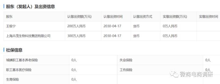 上海孝合网络科技有限公司为“艾玛仕新零售”的官方公众号和官方小程序的认证主体,该公司成立于2020年5月19日,法定代表人王极宁,股东有上海卉茂生物科技集团有限公司(大股东)、王极宁,监事为邓国军,注册资本500万元,据2021年度报告显示,该公司股东的实缴出资额为0元,参保员工为0人。
