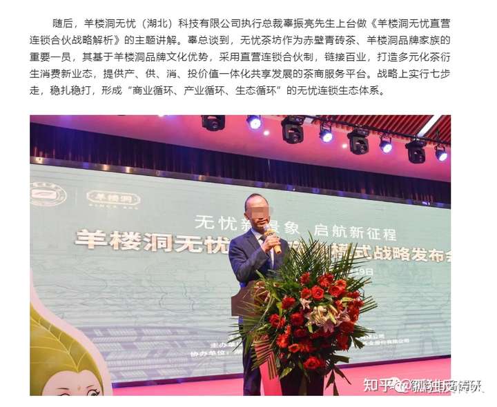 企查查显示,羊楼洞无忧(湖北)科技有限公司成立于2020年7月14日,注册资本为1000万元,张文哲担任法人,持股60%,汪南海持股40%。根据网友曝出的组织架构,羊楼洞无忧(湖北)科技有限公司与羊楼洞茶叶股份有限公司同隶属于赤壁青砖茶产业发展集团。