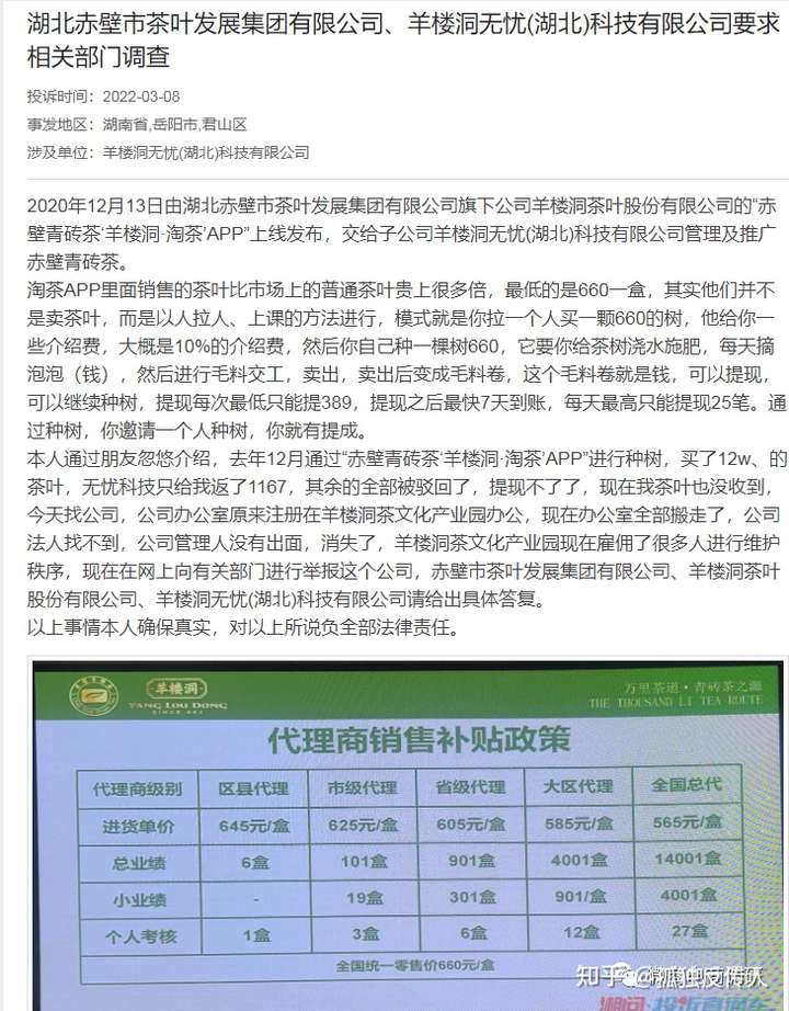 用网友通俗的话说,羊楼洞无忧茶坊“运营的过程模式就是MLM模式,是660元的门槛,一个月左右回本,在加上一个10%的利息,你每天需要做的事情就是浇水,如果你忘记浇水了,就没得收益,如果你去拉人,去推广,就回的更快,赚的更多”。