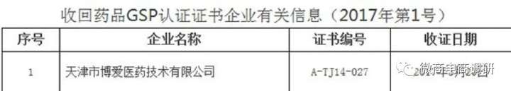 但在2017年,博爱医药技术因公司违反《药品经营质量管理规范》规定,被天津市市场和质量监督管理委员会收回《药品经营质量管理规范认证证书》(GSP),后经过整改后才被发还。