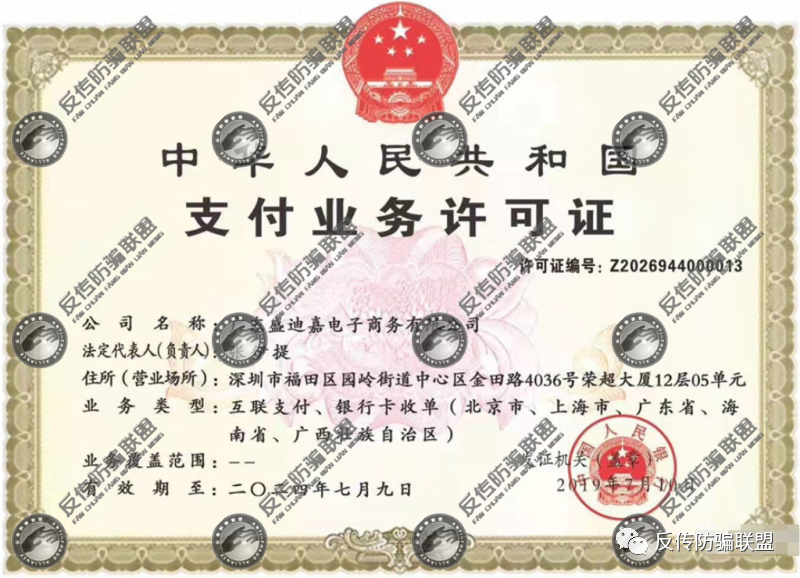 据宣传资料显示,广东盛迪嘉电子商务股份有限公司于2014年获得央行颁发的《支付业许可证牌照》支付牌照,并于2019年成功续期5年至2024年7月9日。服务范围涵盖:网上支付、POS支付、代收代付以及快捷支付。