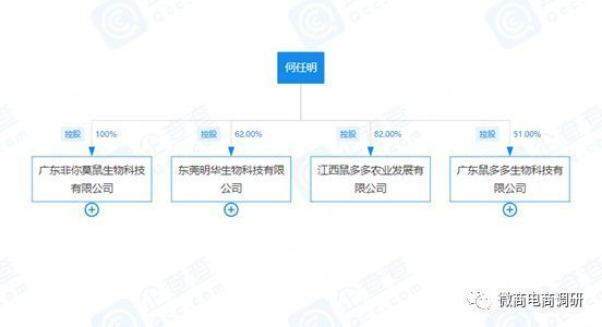 该公司由何任明控股51%并担任执行董事兼总经理,东莞明华生物科技有限公司持股27%,广东非你莫鼠生物科技有限公司持股22%。何任明是该公司的实际控制人和最终受益人,同时也是“鼠多多”的创始人。