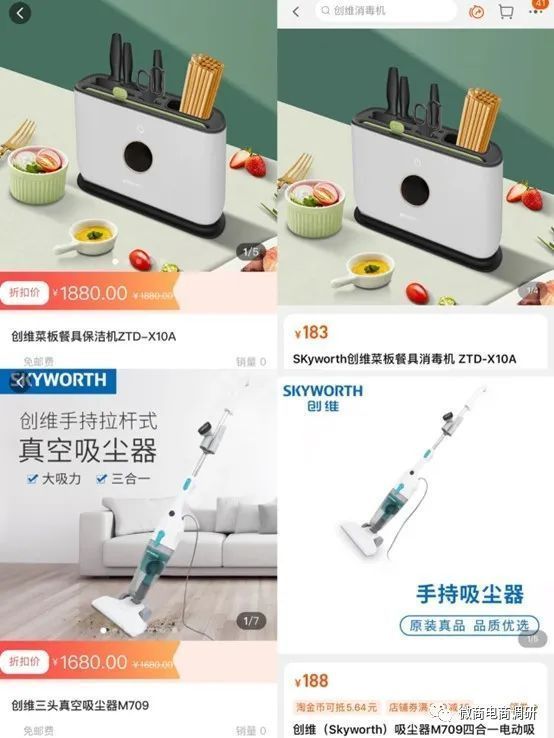 而智能家电的价格也颇为引人注意,比如创维三头真空吸尘器M709在商城售价1680元,创维菜板餐具保洁机ZTD-X10A售价1880元。那么这两个产品的定价是否虚高?我们以这两个产品为例,其在其他电商平台的售价分别是188元及183元。相较之下,国潮商城中吸尘器和餐具保洁机上千元的价格确实高的离谱。这种挂羊头卖狗肉的行为,吸引消费者购买高于市面价格的产品,看似既可以得钱,又可以获得产品,实际上是让消费者浪费时间,吸引他们消费,缴纳智商税。