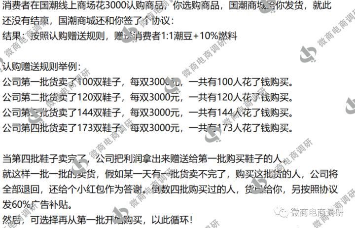 消费者在国潮线上商场花3000认购商品,选购商品,国潮商城会和消费者签一个协议:按照认购赠送规则,赠送消费者1:1潮豆+10%燃料。
