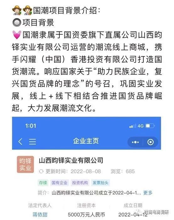 据国潮经销商介绍,国潮隶属于国资委旗下直属公司山西昀铎实业有限公司运营的潮流线上商城。