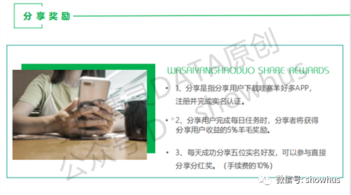 • 2、分享用户完成每日任务时,分享者将获得分享用户收益的5%羊毛奖励。