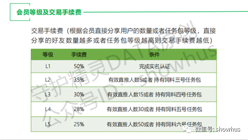 交易手续费(根据会员直接分销用户的数量或者任务包等级,直接分享的好友数量越多或者任务包等级越高则交易手续费越低)