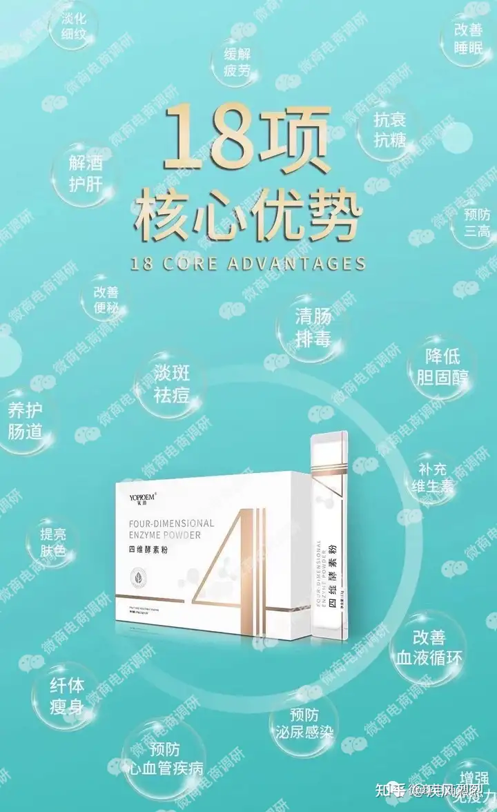 除了保健功效,预防疾病对于该产品来说似乎也不在话下。还有推广人员在微博上直接列出了氧泊四维酵素粉具有18项核心优势,明确表示该产品能够预防心血管疾病。