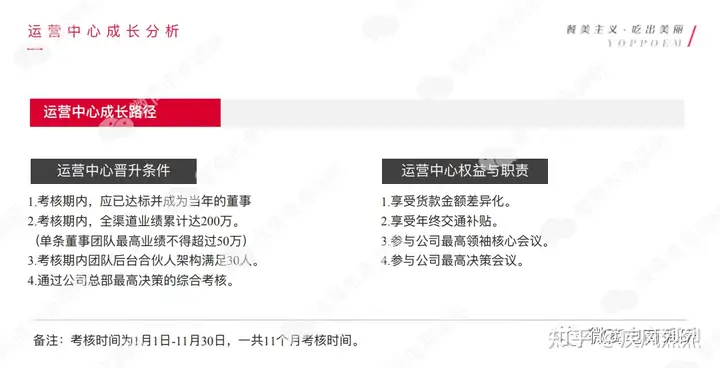 成为运营中心条件:考核期内,应已达标并成为当年的董事;考核期内,全渠道业绩累计达200万(单条董事团队最高业绩不得超过50万);考核期内团队后台合伙人架构满足30人;通过公司总部最高决策的综合考核。