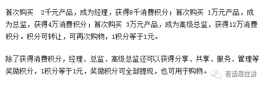 从以上制度模式来看,若是做到高级总监级别,平均月收入可达159万,收入总和更是能达到1915万。显而易见,康尔快销旗下的乐湃德青春饮层级已经达到3级,且需要花费一定的金额才能获得代理资格,这些明显与现行的法律法规相违背。
