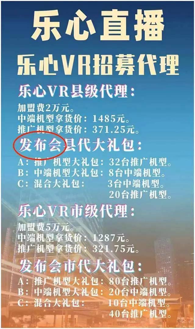 这位“法人”矢口否认自己和公司涉嫌违法违规行为,但更需要关注的是现阶段,米乐公司仍在招募区域代理+“乐迷”会员+超级主播,利用组合拳持续疯狂地进行收割,而拉人头等涉传制度却愈发隐蔽,比如把“区域代理推荐奖励”改为“硬件设备租赁收益”,市代90%、县代80%……事实上依旧是“换汤不换药”,依然需要通过拉人头发展下线做市场。在此,提醒广大投资人,VR直播并不是什么高科技,“乐心”玩的只是涉嫌非法集资+击鼓传花的传销把戏!
