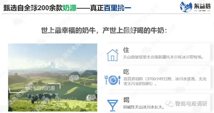 为了让网友信任莱益蓓酸奶奶源的高品质,推广人员提供的PPT资料还写有这样的广告语:“世上最幸福的奶牛,产世上最好喝的牛奶”。