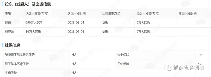 莱益蓓的经营主体为杭州莱益蓓生物科技有限公司,据官方资料介绍,这是一家专注于大健康领域中肠胃健康领域产品研发、销售的生物科技公司,该公司成立于2020年3月25日,法定代表人彭灵敏,股东有彭灵敏(持股比例为80%)、创和(烟台)健康产业有限公司,监事为彭云,注册资本1000万元,据2020年度报告显示,该公司当时的股东的实缴出资额为0元,参保员工仅有4人。