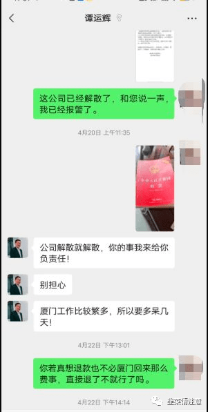 下面是该受害者与谭运辉的聊天记录: