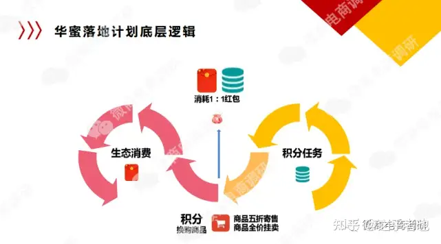 备注:华蜜的核心商业模式是积分易货。积分的获取来源分为购买店主礼包可借用一定数量的积分,或者直接购买他人销售的积分专区产品获得基础积分,这些积分都可以用来换取卷轴,通过卷轴做任务付出劳动,从而生产出更多积分。