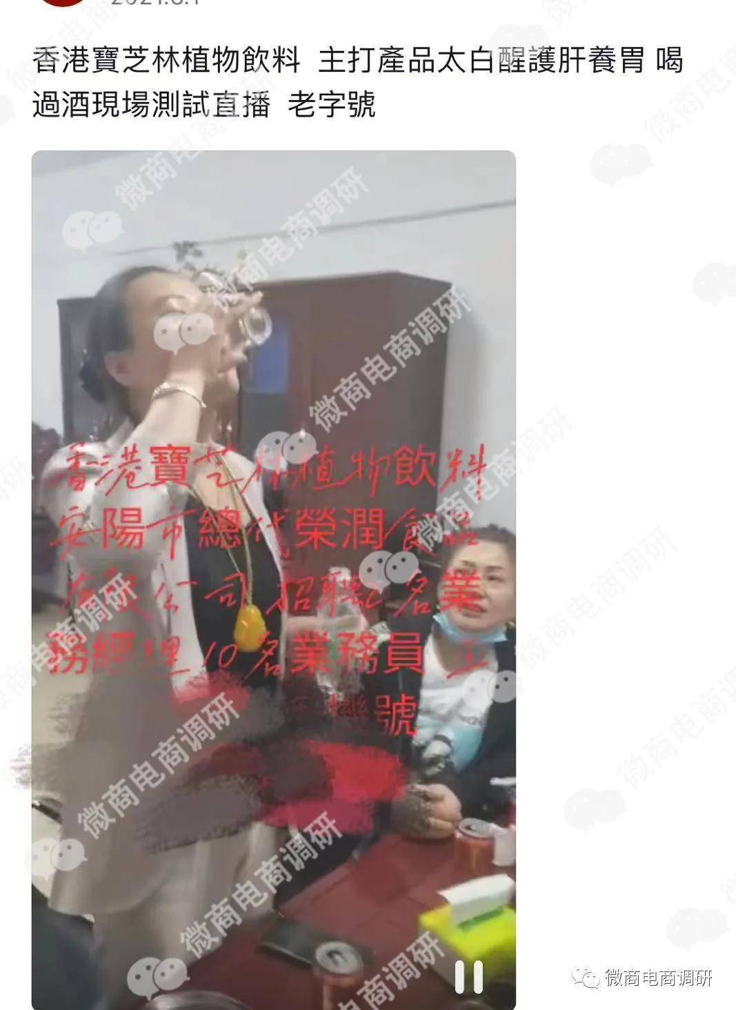 而在河南省,还有一家自称隶属于香港宝芝林的河南省宝芝林生物科技有限公司,这家公司主营的产品是一款叫“太白醒”的饮料,被宣传成“解酒神器”。