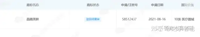 该公司所申请的关于“晶睛美眸”的商标还处于“驳回待复审”的阶段。
