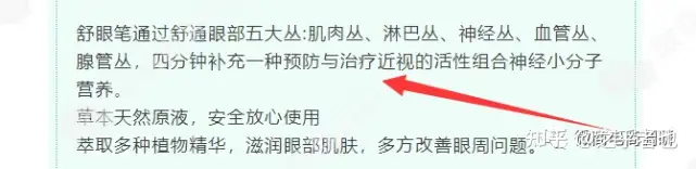 公开资料《晶睛美眸新零售靶向护眼百问百答》还指出舒眼笔可以“补充一种预防与治疗近视的活性组合神经小分子营养”。