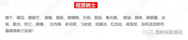 “眼干、眼涩、眼疲劳、眼酸、眼胀、眼模糊、近视、弱视、青光眼、眼袋、眼痒、黑眼圈、远视、散光、眼红、眼痛、白内障、老花眼、飞蚊症、结膜炎、红血丝、夜盲症、迎风流泪就用晶晴美眸……”最近半年,网上出现了不少类似的广告语,引无数眼疾患者为之侧目,晶睛美眸这个品牌也就此走入了大众的视野。