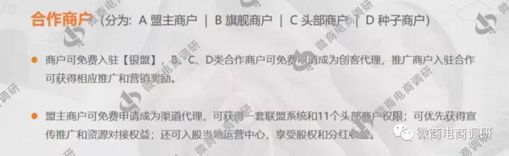 商户可免费入驻银盟,B、C、D类合作商户可免费申请成为创客代理,推广商户入驻合作可获得相应推广和营销奖励。