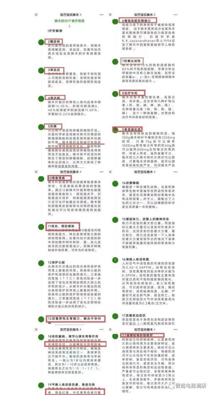 微商电商调研却了解到,“翼生圆辣木叶压片糖果”的代理商将产品宣传为可以治疗近百种疾病的印度“神药”。