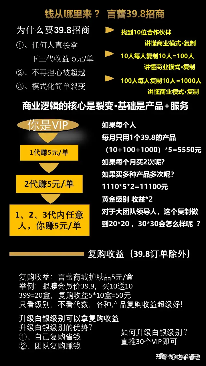 在微商行业,以面膜作为爆品打开市场的企业不胜枚举,与靠大单赚钱的微商企业不同,一家名叫言蕾的微商项目,只需要花费59.9元购买一盒言蕾回春面具面膜,就能成为言蕾代理,然后通过不断地拉新人加入和复购,每月就能收入数万元。