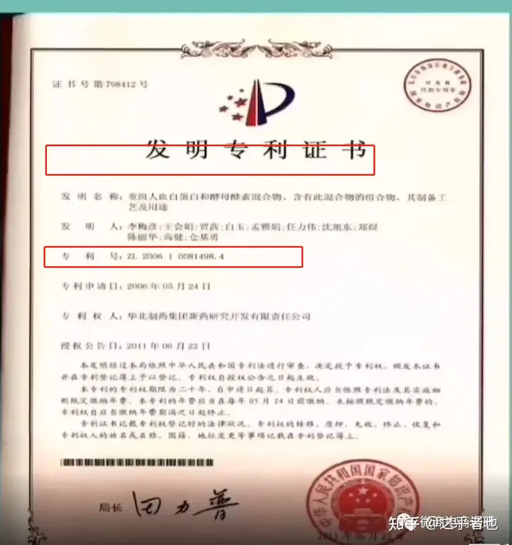 在言蕾的宣传文案中,一款被称为回春面具的面膜堪称神品,据说获得了唯一一个集保湿、美白、除皱的专利号(ZL200610081498.4),通过查询得知,其发明名称为“重组人血蛋白和酵母酵素混合物,含有此混合物的组合物,其制备工艺及用途”,而专利权人是华北制药集团新药研究开发有限责任公司,与言蕾没有任何关系。