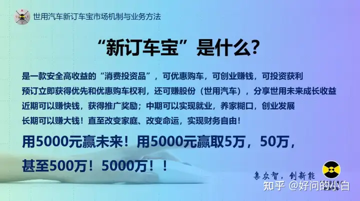 在无车辆量产的情况下,却对外预订,最关键的是定车可以“发大财”?世用汽车涉嫌利用定车进行传销,万时头条http://news.79ix.net就此进行了调查。
