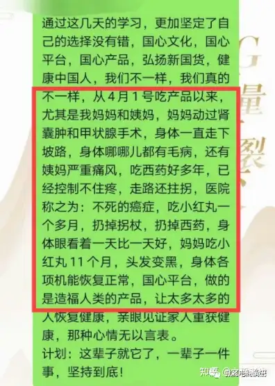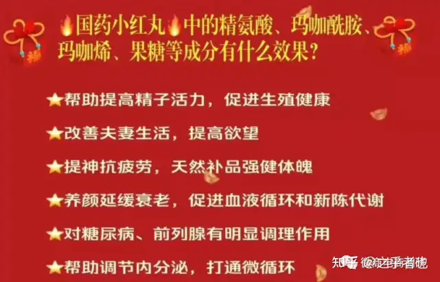国药小红丸是“国心5G新零售”旗下的主打产品。据公开资料《【产品详解】国药小红丸PPT版介绍》显示,国药小红丸是一款食品,由国药药材医养有限公司荣誉出品,遵照药食同源理论,汇集知名补肾动植物食材,经过高倍浓缩,低温萃取的一种优良食物补充品,富含人体所需的17种氨基酸、维生素、微量元素,配料成分中的丰富营养物质能调理全身内环境、补气补血、补肾调养,促进血液内循环,消除疲劳,梳理身体五脏六腑运作环境,全面维持充沛活力。