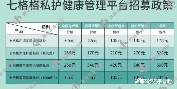 接下来,我们再来关注一下“格格私护健康管理平台”推行的奖金制度该如何解读。据推广人员阿强(化名)提供的资料显示,平台官方将七格格的代理商分为了六大级别,分别是特约经销商、市级经销商、省级经销商、全国总代理、荣誉代理和官方代理。不同级别的拿货价自然不同,我们以七格格私语花蕊抑菌凝胶为例,该产品的零售价为178元,特约的拿货价为135元,市级的拿货价为105元,省级的拿货价为85元,总代、荣誉和官方的拿货价为65元。