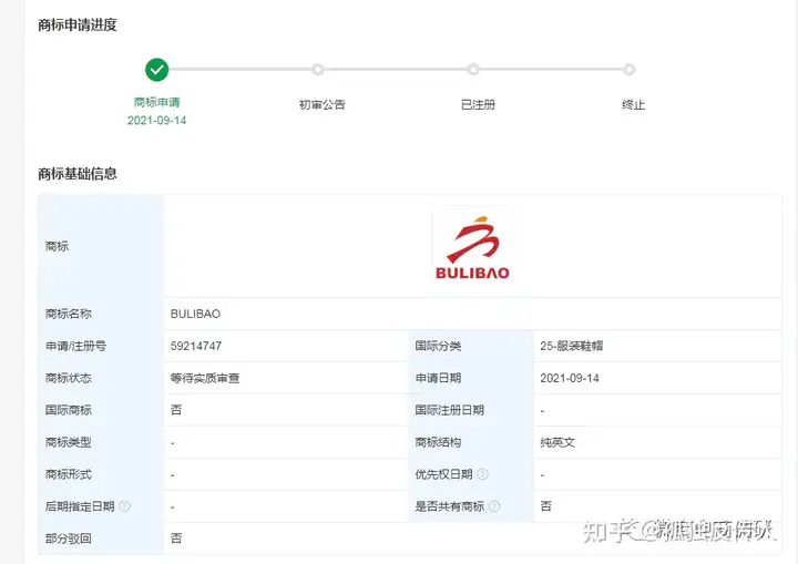 2021年9月14日,山西步力宝健康科技有限公司向国家知识产权局申请了“BULIBAO”的纯英文商标,注册号为59214747,国际分类为25类服装鞋帽,商标状态为等待实质审查。