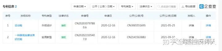 针对其宣称的获得多项国家专利,企查查却显示只有2项专利信息,均是2020年12月16日申请。第一项专利公告于2021年5月25日,公开号为CN306555169S,申请人为山西步力宝健康科技有限公司,发明人为许瑞,发明简介为运动鞋外观设计产品名,产品用途为脚上穿着,设计要点于产品的形状、图案及其结合。