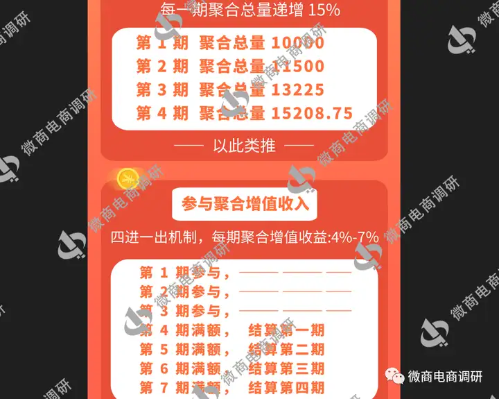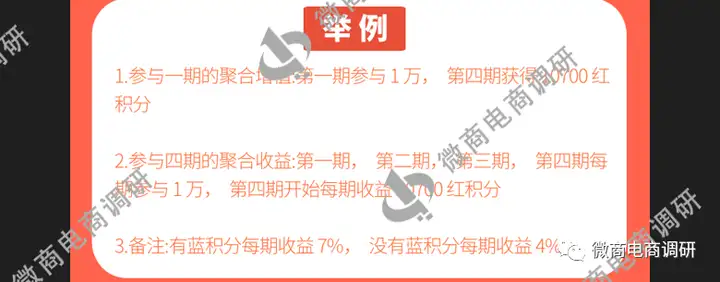 1.参与一期的聚合增值:第一期参与10000红积分,四期满后获得10700红积分