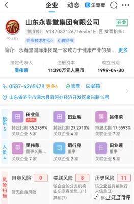 据天眼查显示山东永春堂集团有限公司成立于1999年,位于山东省济宁市泗水县泗河办经济开发区泉兴路15号,注册与实缴资本均是11390万,法人代表吴伟荣。永春堂于2015年2月拿到“直销经营许可证”,被允许经营保健食品。据国家企业信用信息公示系统和商务部直销行业管理信息系统显示,永春堂的直销产品包括保健食品、化妆品、保洁用品三类16种,目前共有12家在营分公司。其中,安徽、浙江、上海、济南永春堂四家分公司被列入经营异常名录。