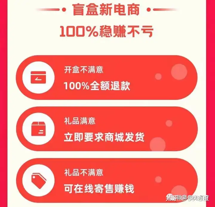 话说回来,这场盲盒游戏是怎样实现所谓的“稳赚”的?据官方资料介绍,盲盒购买后可在线开启,获得的商品不满意可转售、可全额退款,打开的盲盒转售和退款均为24小时到帐,未打开的盲盒可直接退款,立即到帐。为保障用户权益,盲盒中的商品价值均超过盲盒价格,开出的商品可通过在线寄售赚钱,寄售价格均大于盲盒价格1%到2.5%,24小时未售出的商品平台将垫付收回。