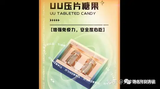 无独有偶,另外一款名为“天芝鹿UU压片糖果”的产品也被相关视频资料包装出了增强免疫力的保健作用。