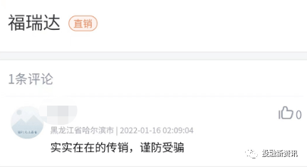 记得自瑞达商城曝雷后,福瑞达公司以一纸通告广大投资人甩锅经销商,受害人苦苦维权至今无果的局面。而投融新资讯了解到,福瑞达商城旗下的福瑞达力多泰、云星站新零售等多个平台也多次被用户质疑其运营模式涉嫌传销。那么此次福瑞达公司新推出的“康妆优选”平台在不久之后是否会迎来与“瑞达商城”一样的结局?呼吁职能部门加强监管,如是仅仅打压维权人维护企业不良行为置百姓水火而不顾的监管方式同样也是会暴雷的。良药苦口,万望各位网民洁身自好谨慎参与,别为了那水中月镜中花的‘财富’迷失了双眼而陷身水火般的维权境地。针对该盘,投融新资讯将持续关注!