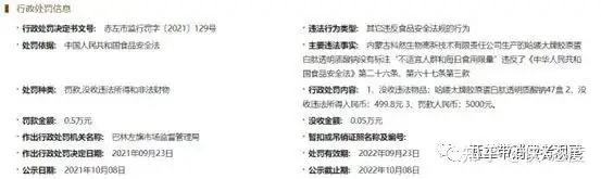 值得关注的是,在2021年9月,内蒙古科然生物高新技术有限责任公司还曾因“其它违反食品安全法规的行为”,收到过巴林左旗市场监督管理局开出的罚单。行政处罚决定书文号: 赤左市监行罚字〔2021〕129号。
