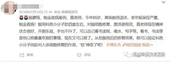 科然大豆肽粉小分子纯肽上市已久,围绕着这款产品传出的虚假宣传之音在互联网上也已持续多年,比如在公众号“肽健康知识”的宣传下,类似的广告图片便不胜枚举。