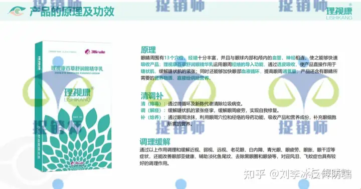 而在代理人小李提供的理视康产品宣传物料《理视康专业知识讲解》中却对理视康百草舒润眼精华乳作出如下描述:
