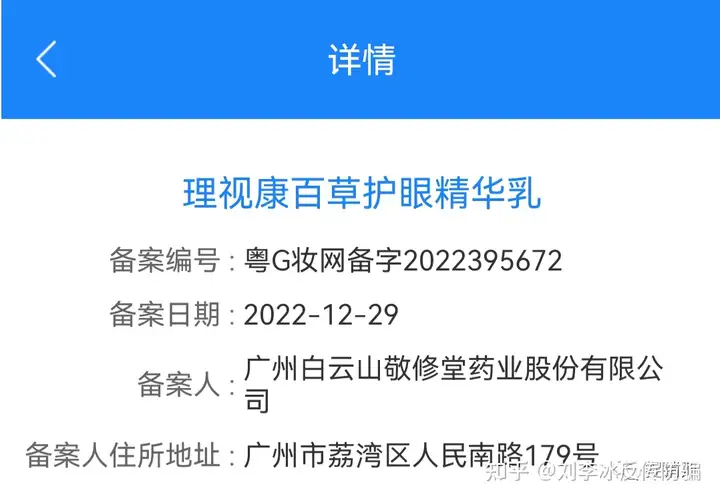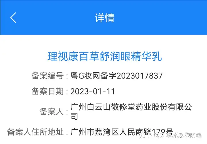 根据其备案信息可以得知:理视康百草舒润眼精华乳备案编号为粤G妆网备字2023017837,理视康百草护眼精华乳备案号为粤G妆网备字2022395672。可以见得以上两款产品均为普通化妆品,并不是特殊用途化妆品,更不是药品或者医疗器械,本身不具备任何疗效。