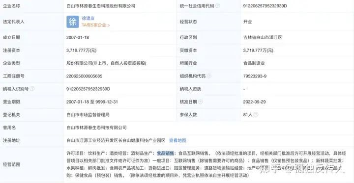 据企查查显示,白山市林源春生态科技股份有限公司成立于2007年,现任董事长为徐建友,所属行业为食品制造业,其主要产品线包括“林源春活力面膜”、“眼部护理液”“艾灸调理液”等,而“林源春细胞肽”是其主要产品之一。