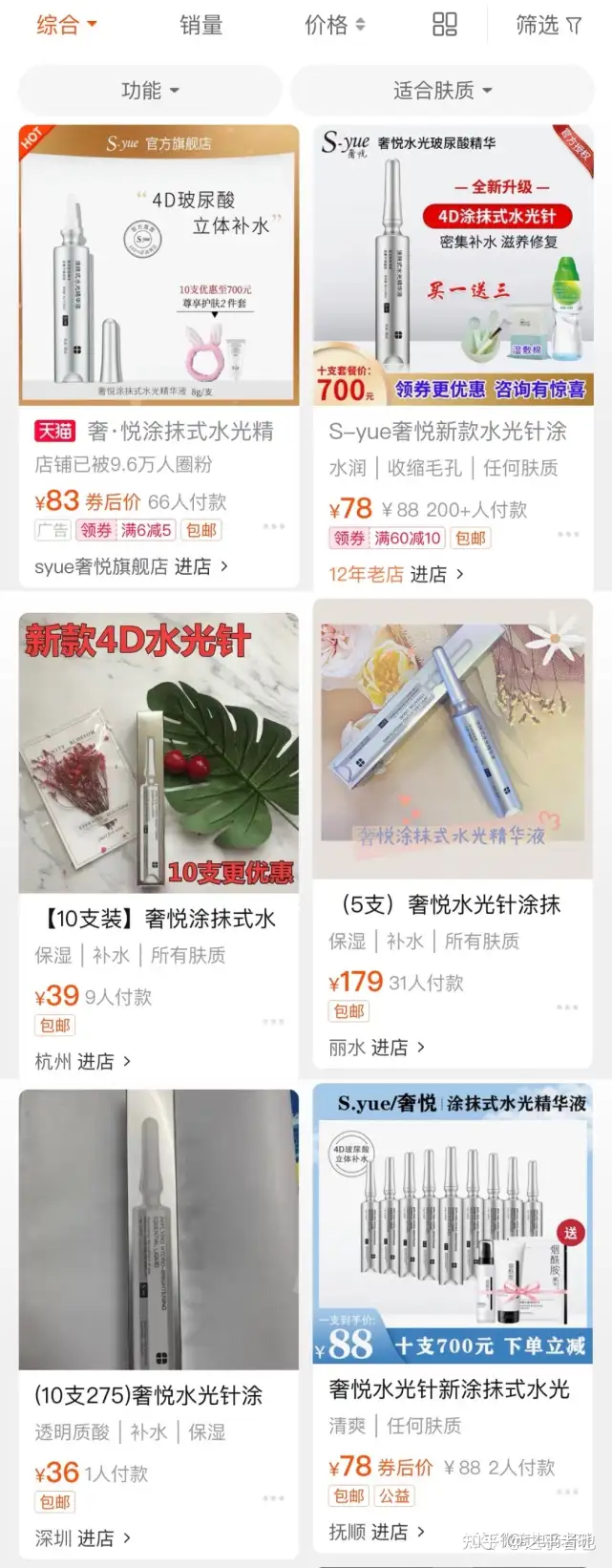 当我们在淘宝等购物平台搜索奢悦的相关产品时发现,同一件产品的价格参差不齐,“微商清货”等字眼频频出现,由此可见,乱价现象已经出现在奢悦的经销团队。