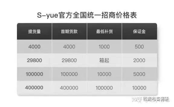 据了解,奢悦以前的代理分为四个等级,分别为4000元市代、29800元总代、100000元董事和400000元创始,这四个级别都需要缴纳相应的保证金,市代500元、总代2000元、董事5000元、创始10000元,并且还有最低补货要求,具体如下图: