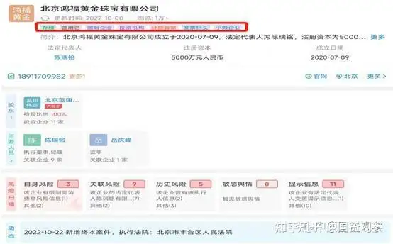 说起国企,中原财经观察不禁想起去年被媒体高度关注的各类“黄金盘”,背景个个高大上,但都干着涉嫌传销及非法集资的“大买卖”。其中以“翰林黄金”、“鸿福珠宝”、“中合万家珠宝”最为典型,前两个股权关联农业部,而后者则与中国供销合作社紧密相连。三者都披着“国有企业”的外衣,鸿福珠宝法人陈瑞铭更是对外宣称曾就任国务院扶贫开发领导小组秘书,办公室主任,后调任国资委国际关系部。最终殊途同归,全部“崩盘”,罚的罚,抓的抓,跑路的跑路。曾经的光鲜亮丽的国有企业身份,如今呈现的是经营异常,失信被执行人,甚至最终身陷囫囵。