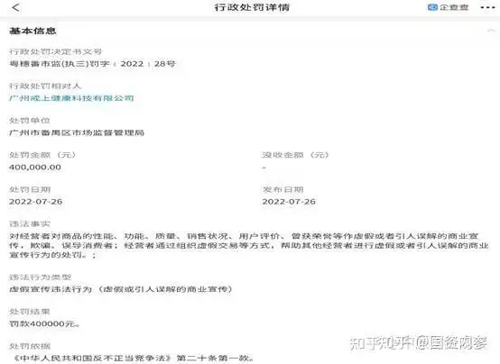 就在“健康中国频道”为戒上健康“摇旗呐喊”,“鼓舞人心”的时刻。7月26日,广州市番禺区市场监督管理局依据《中华人民共和国反不正当竞争法》第二十条第一款针对广州戒上健康科技有限公司虚假宣传的违法行为作出40万元人民币的行政处罚。