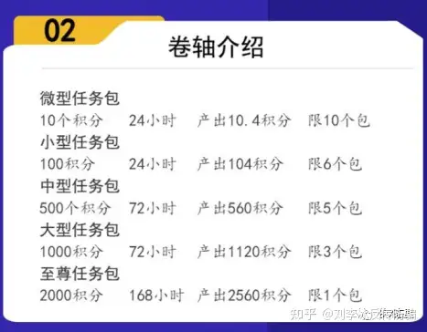 1、微型任务包:10个积分可以购买一个微型任务包,购买24小时后可产出10.4积分,单个会员每日限购10个微型任务包;