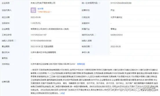 经查,壹鑫商城的公司主体为未来(北京)电子商务有限公司,成立于2022年5月6日,法定代表人包中雪,股东为北京中辉蒙医医院管理有限公司,监事李子轩,执行董事、经理为包中雪,注册资本1000万元整,实缴未知,参保人数0人。这里值得注意的是该公司股东北京中辉蒙医医院管理有限公司,经查,北京中辉蒙医医院管理有限公司,成立于2020年12月25日,法人为包中雪,股东有包中雪、朱亚兰,注册资本5000万元整,实缴未知,参保人数0人。